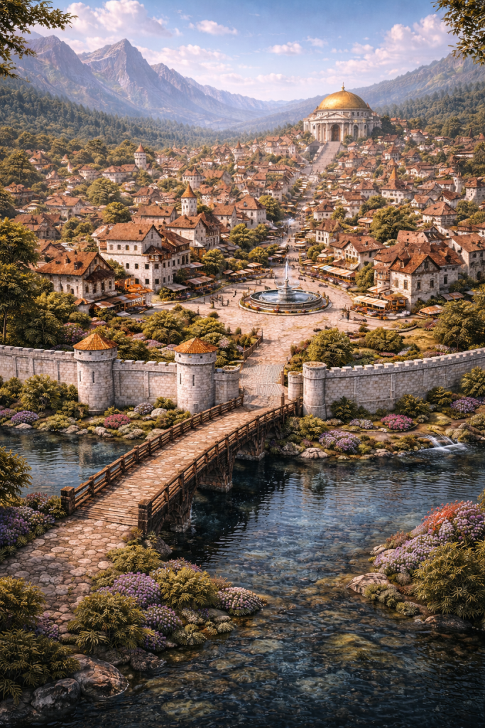 Situated among these volcanoes is ashvael, a city aply named.